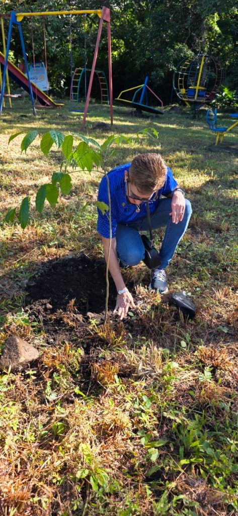 La gira inició en el Parque de la Amistad Demetrio Miranda, ubicado en el corregimiento de El Francés, distrito de Boquete, donde la gobernadora, acompañada por los miembros del club y del Grupo Rotaract de la Universidad Autónoma de Chiriquí (UNACHI), participó en una jornada de siembra de árboles, reafirmando el compromiso ambiental de Rotary.