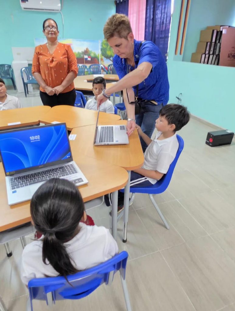 Posteriormente, la delegación visitó la Escuela Bilingüe República de Francia, en la ciudad de David, para conocer el funcionamiento del aula interactiva recientemente inaugurada. Este proyecto, gestionado por el Club Rotario de David, busca fortalecer el proceso educativo mediante el uso de recursos tecnológicos y espacios innovadores para estudiantes y docentes.